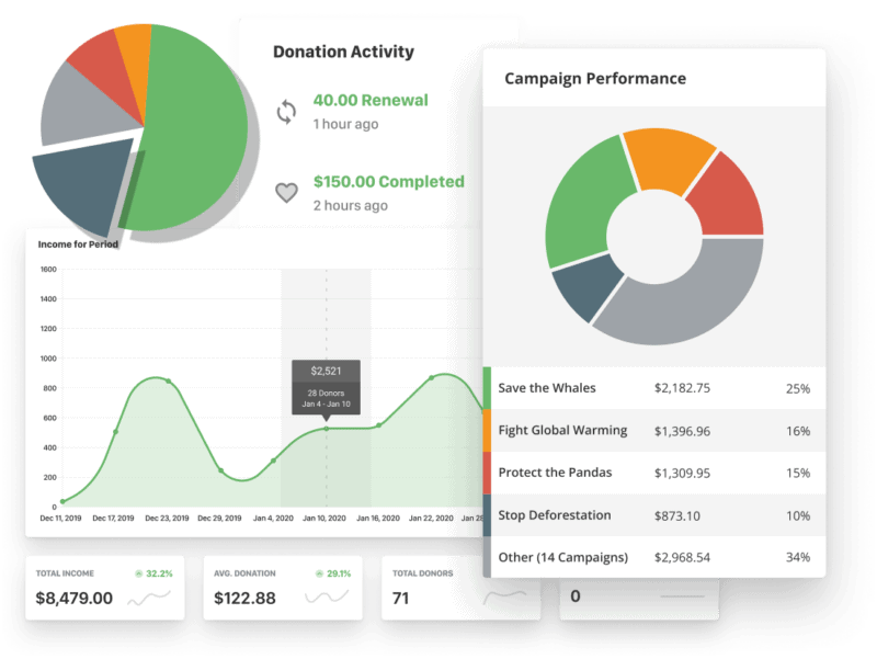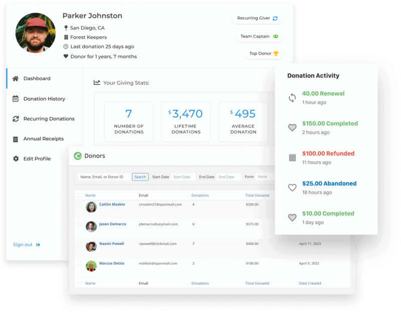 We help you track your donors and their contributions, generate donation tax receipts, and seamlessly integrate with popular third-party tools.